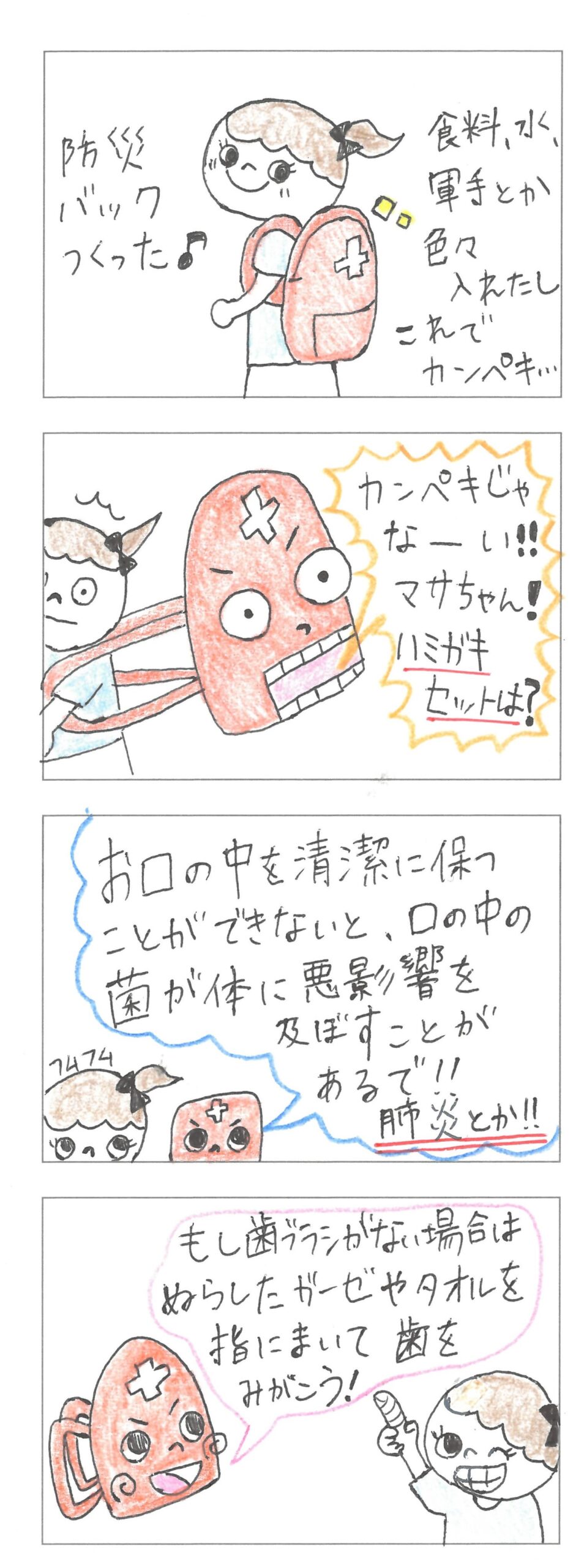 ⑬202406みらい防災チーム4コマ防災バックつくった
